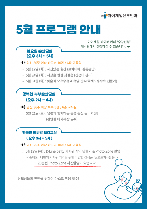 각 프로그램 수강신청은 네이버카페 / 아이제일산부인과