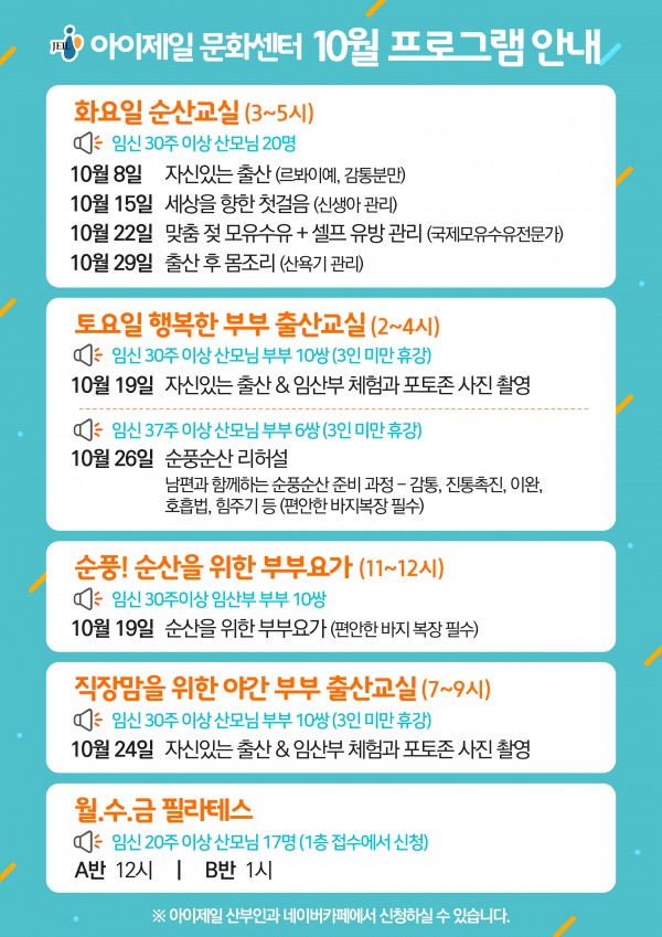 각 프로그램 수강신청은 네이버카페 / 아이제일산부인과